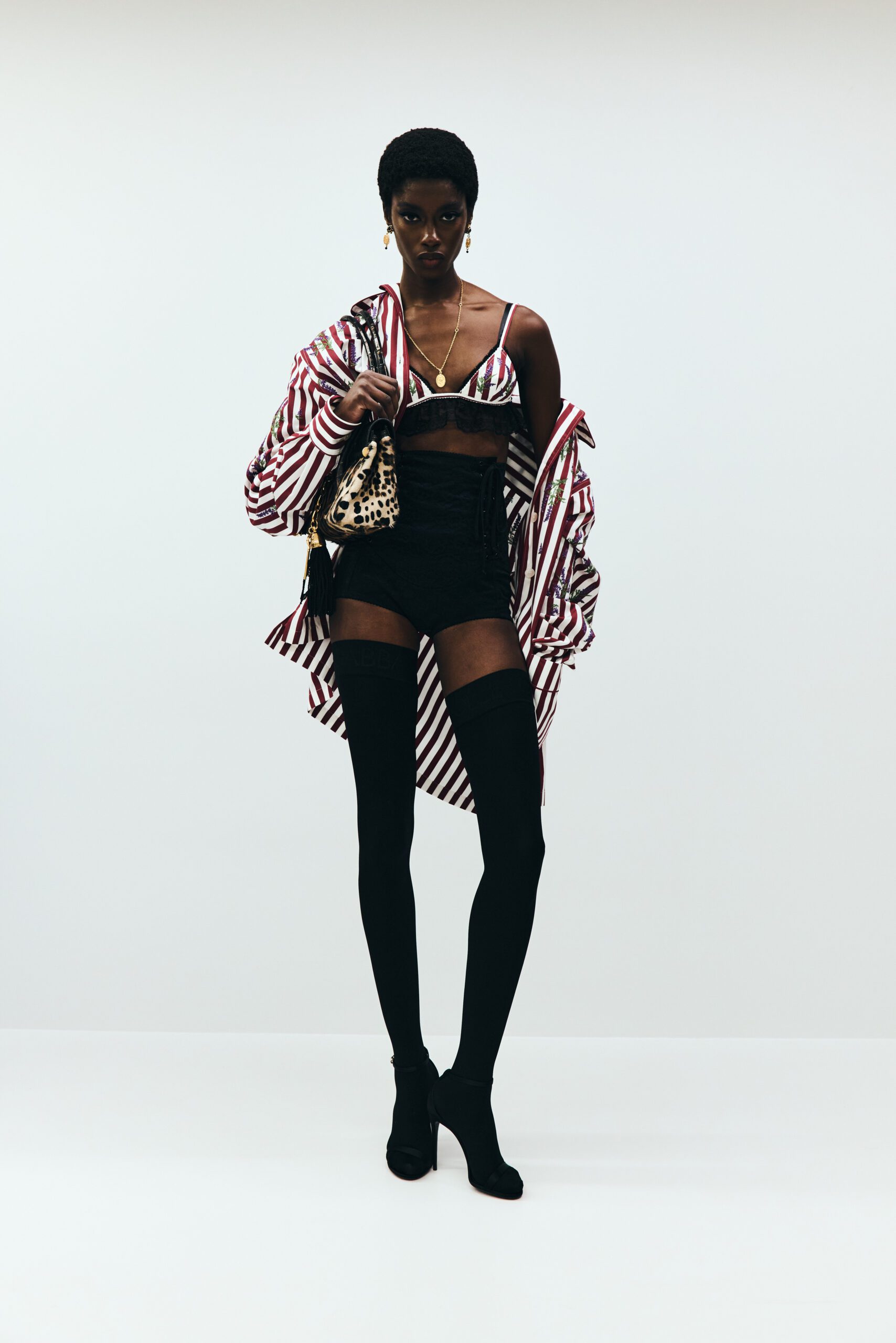 La colección reinterpreta el clásico pijama masculino desde una mirada sensual y contemporánea, fusionando lencería negra, detalles joya y sastrería precisa. El resultado es un nuevo lenguaje visual que transita entre el boudoir y la vida urbana, con la inconfundible ironía y el espíritu provocador del ADN de Dolce&Gabbana.
